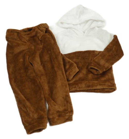 2set - bílo-hnědá plyšová mikina s kapucí + hnědé tepláky