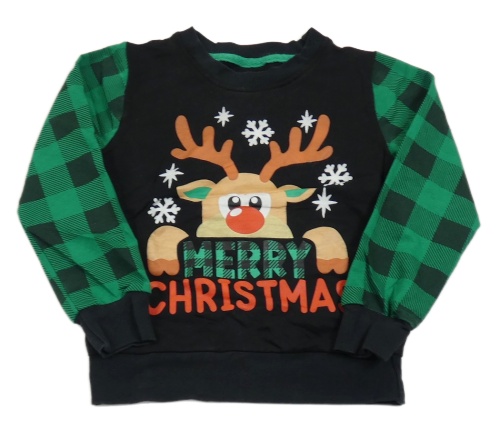 Černo-zelená mikina se sobem a kostkovanými rukávy