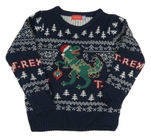 Tmavomodrý vzorovaný svetr s dinosaurem Lily & Dan