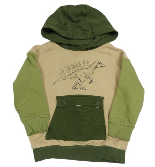 Béžovo-khaki mikina s dinosaurem a kapucí