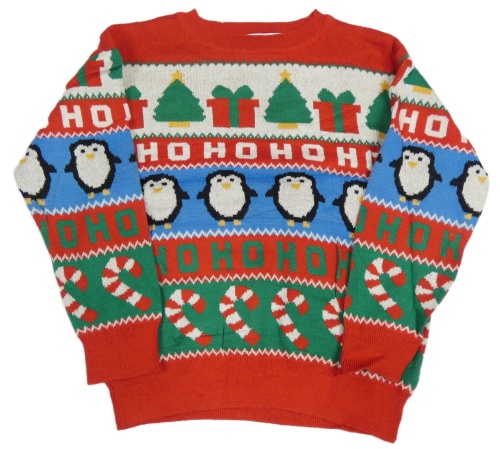 Červeno-bílo-zeleno-modrý vzorovaný svetr s tučňáky H&M