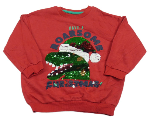 Červená mikina s dinosaurem z překlápěcích flitrů F&F