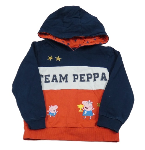 Tmavomodro-červeno-bílá mikina s nápisem a Peppou a kapucí