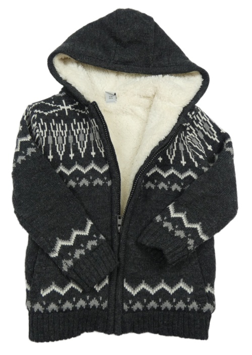 Antracitový vzorovaný zateplený propínací svetr s kapucí Tu