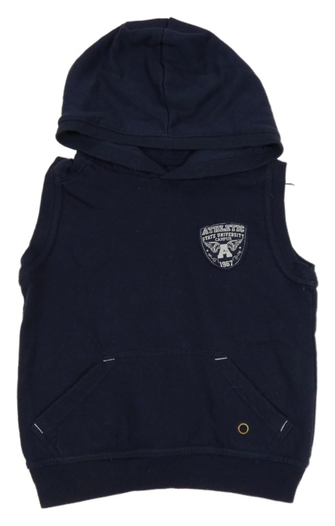 Tmavomodrá tepláková vesta s nášivkou a kapucí