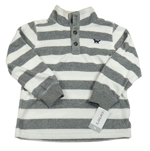 Nové - Šedo-bílá pruhovaná fleecová mikina s výšivkou a knoflíky Carter's