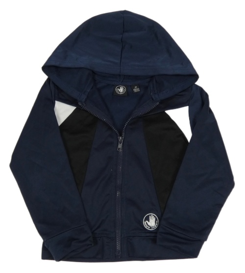 Tmavomodro-bílo-černá sportovní propínací mikina s kapucí