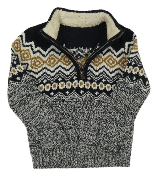 Černo-bílo-hnědý melírovaný pletený svetr se vzorem St. Bernard