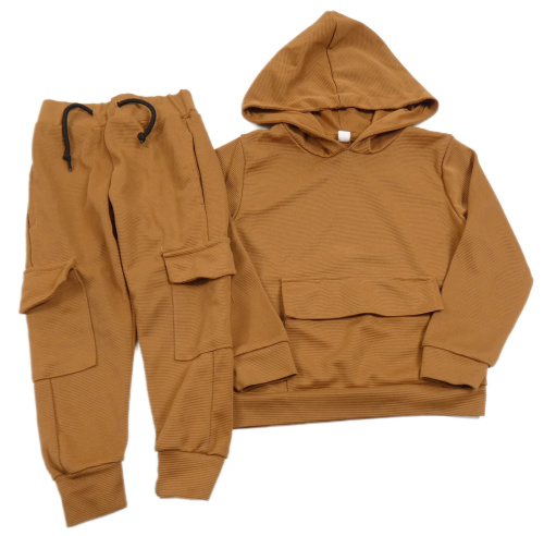 2set - Skořicová žebrovaná mikina s kapucí + tepláky