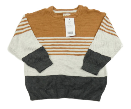 Nové - hnědo-světlešedo-tmavošedý žebrovaný svetr s pruhy F&F