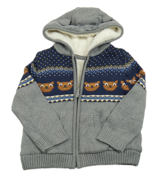 Tmavomodro-šedý zateplený propínací svetr s medvědy a kapucí Mothercare