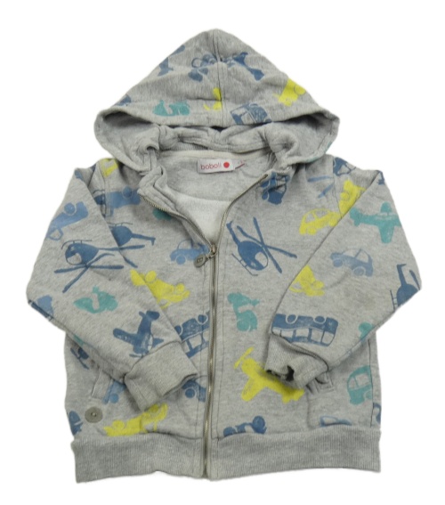 Šedá propínací mikina s dopravními prostředky a kapucí Boboli