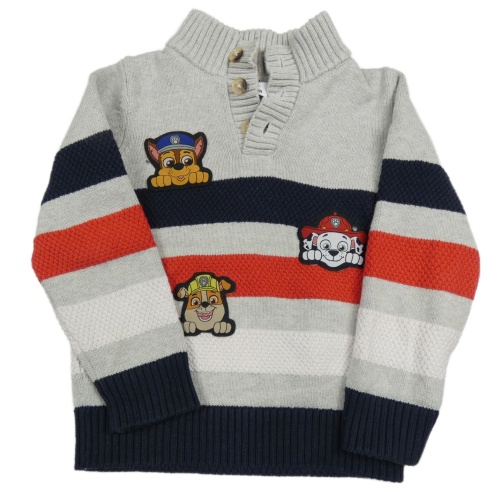 Šedo-tmavomodro-červený pruhovaný svetr s Tlapkovou patrolou Nickelodeon
