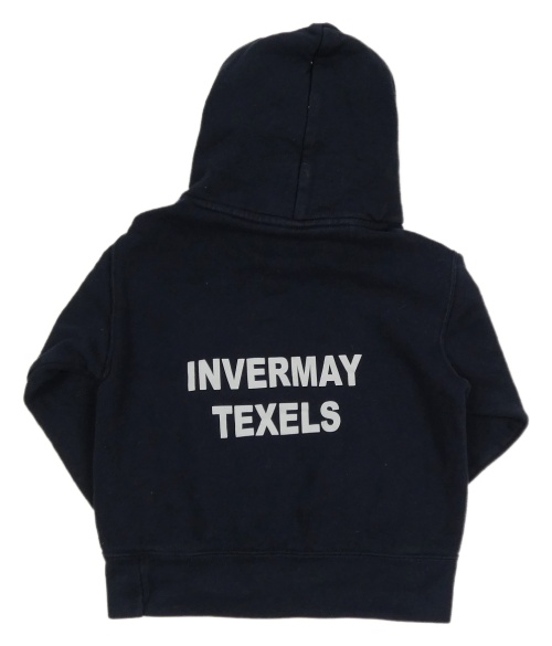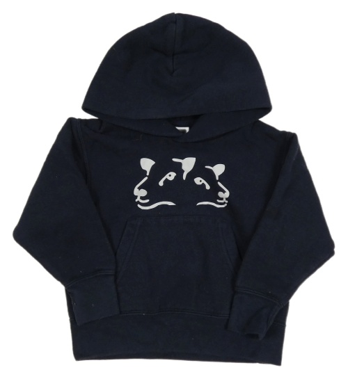 Tmavomodrá mikina s ovcemi a nápisy a kapucí russell