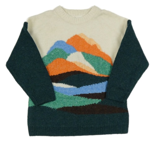 Bílo-tmavozeleno-oranžovo-barevný vlněný svetr H&M