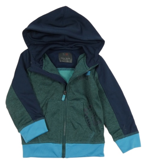 Tmavozeleno-tmavomodrá propínací mikina s nápisem a kapucí Zara