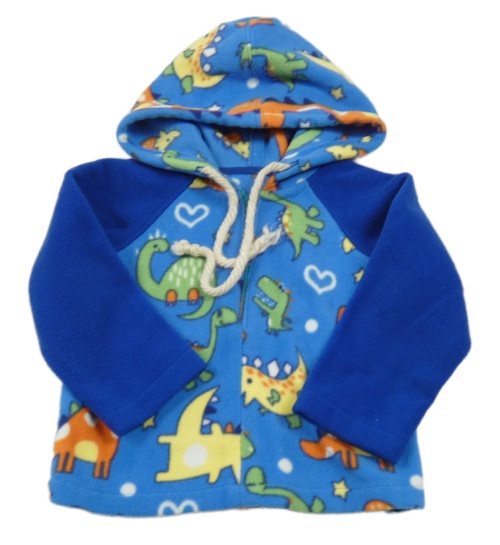 Modro-safírová fleecová mikina s dinosaury a kapucí