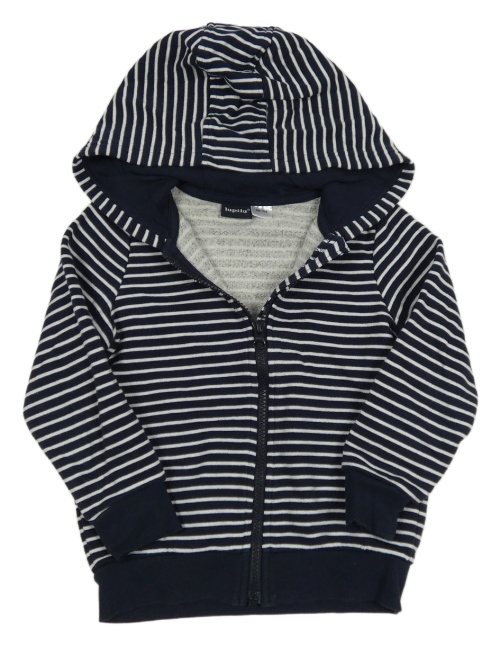 Tmavomodro-bílá pruhovaná propínací teplá mikina s kapucí lupilu
