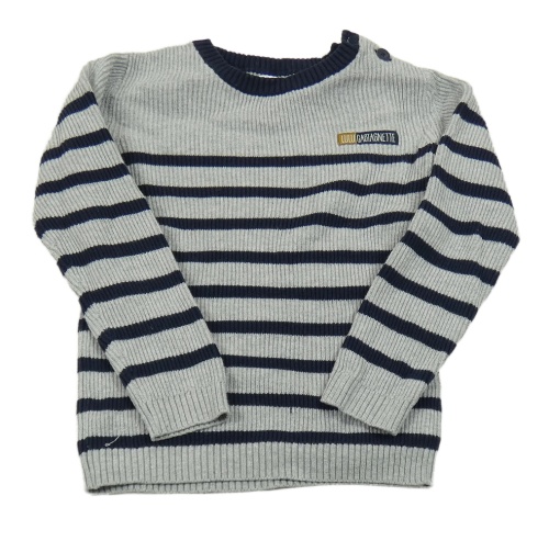 Šedo-tmavomodrý pruhovaný svetr s nášivkou