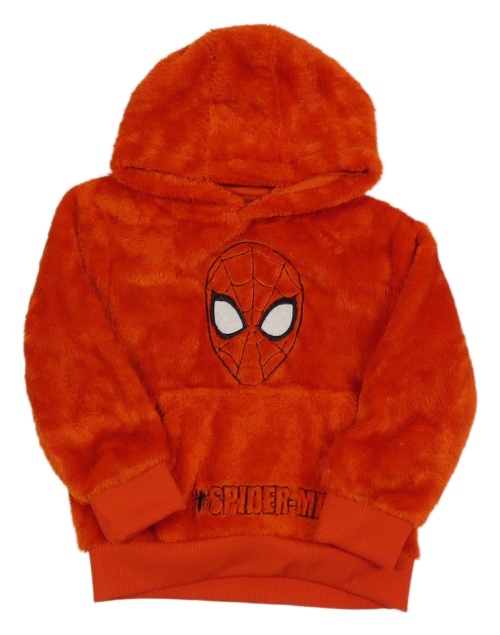 Červená chlupatá mikina se Spidermanem a kapucí Marvel