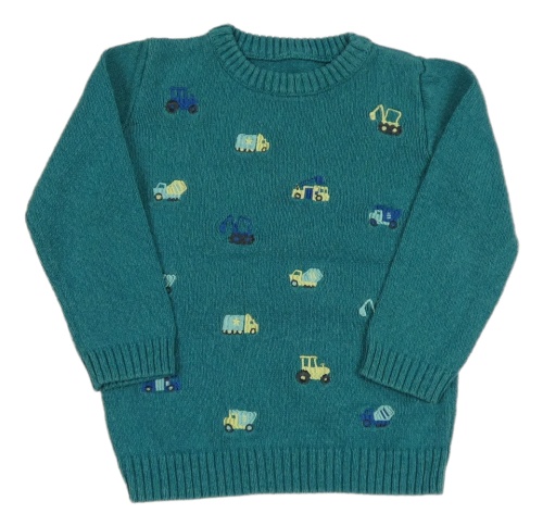 Modrozelený melírovaný svetr se stavebními stroji Nutmeg