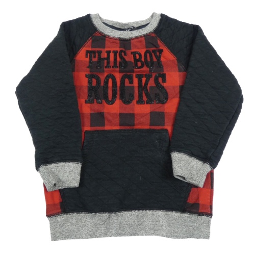 Červeno-černá kostkovaná mikina s nápisy a kapsou a prošívanými vyteplenými rukávy George