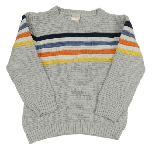 Světlešedý melírovaný žebrovaný svetr s barevnými pruhy PUSBLU