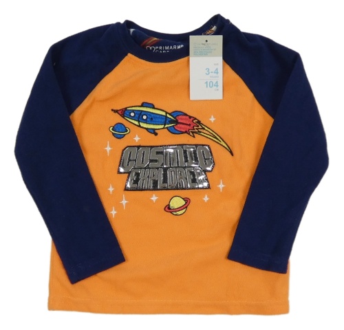Nové - oranžovo-tmavomodrá fleecová mikina s nápisem a raketou Primark