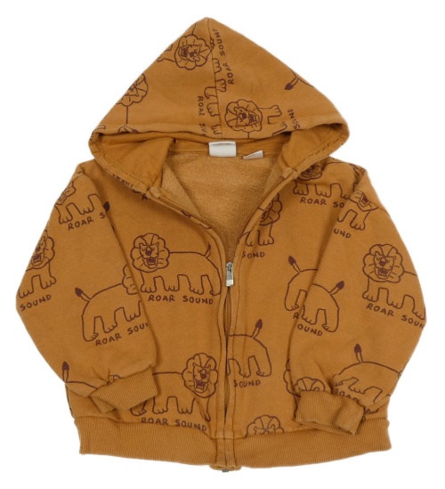 Medová propínací oversize mikina se lvíčky a kapucí ZARA