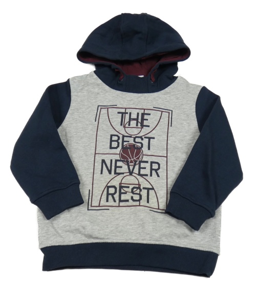 Šedo-tmavomodrá mikina s nápisem a kapucí Topolino