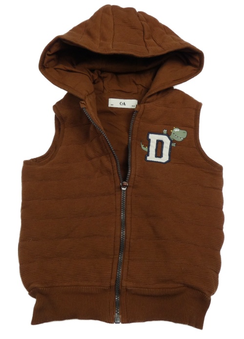 Hnědá zateplená tepláková žebrovaná vesta s písmenem a dinem a kapucí C&A