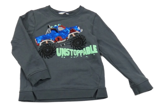 Tmavošedá mikina s monster truckem s překlápěcími flitry M&S