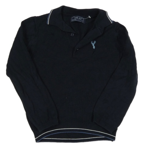 Tmavomodrý vzorovaný svetr s výšivkou a pruhy a límečkem Next