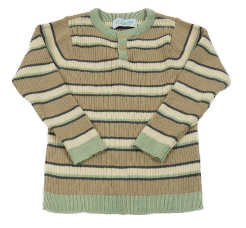 Hnědo-béžovo-zelený pruhovaný žebrovaný svetr