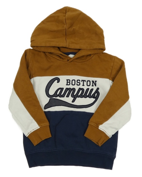 Hnědo-bílo-tmavomodrá mikina s nápisem a kapucí H&M