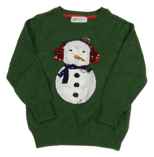 Tmavozelený svetr se sněhulákem z překlápěcích flitrů H&M