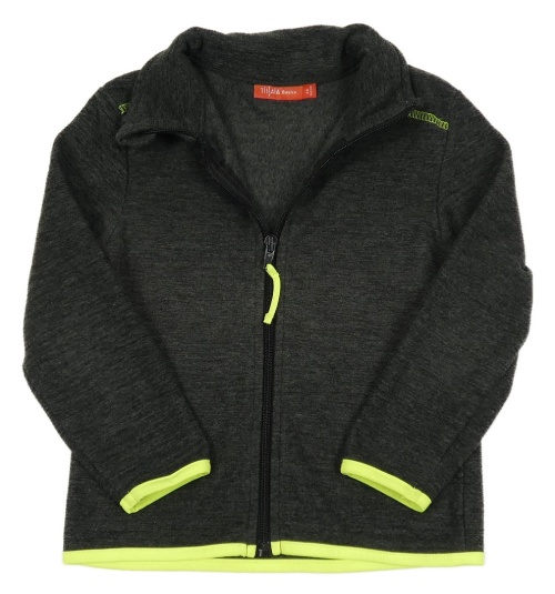 Tmavošedá fleecová propínací mikina s neonovým lemem