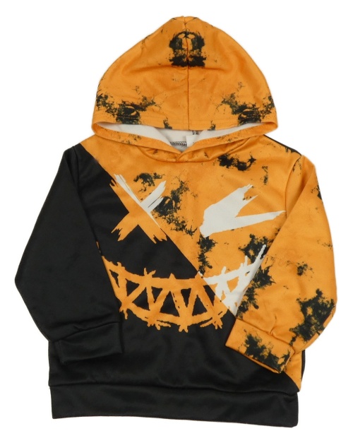 Černo-oranžová mikina se smajlíkem a kapucí Shein