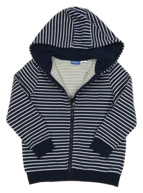 Tmavomodro-bílá pruhovaná propínací mikina s kapucí Lupilu