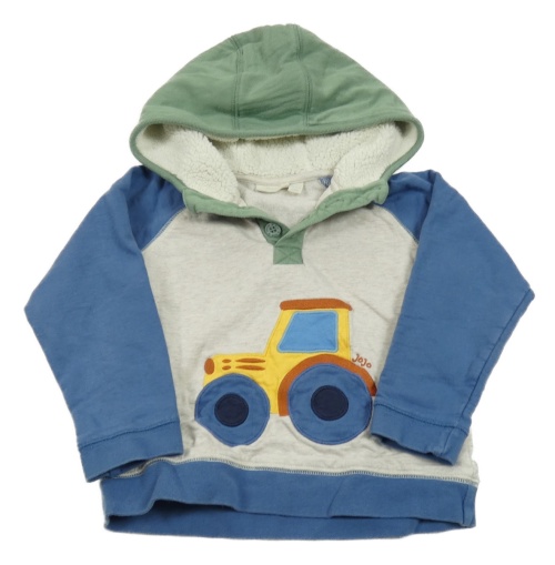 Světlešedo-tmavomodro-khaki mikina s traktorem a kapucí Jojo Maman Bébé