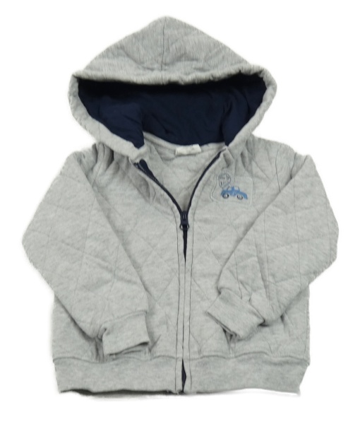 Šedá melírovaná prošívaná zateplená propínací mikina s autem a kapucí Pocopiano