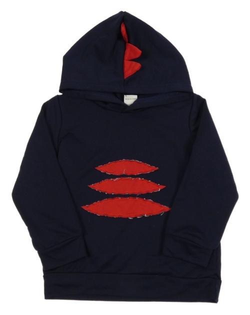 Tmavomodro-červená mikina s pruhy a kapucí s ostny