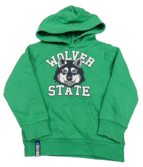 Zelená mikina s husky a nápisy a kapsou a kapucí C&A