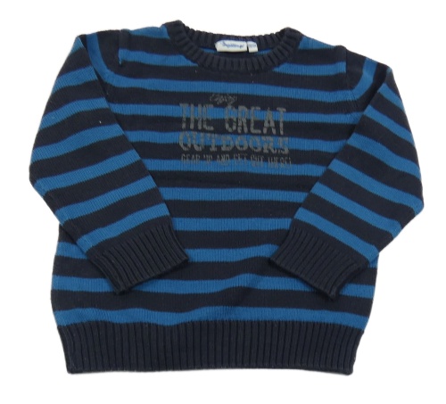 Tmavomodro-modrý pruhovaný svetr s nápisy impidimpi
