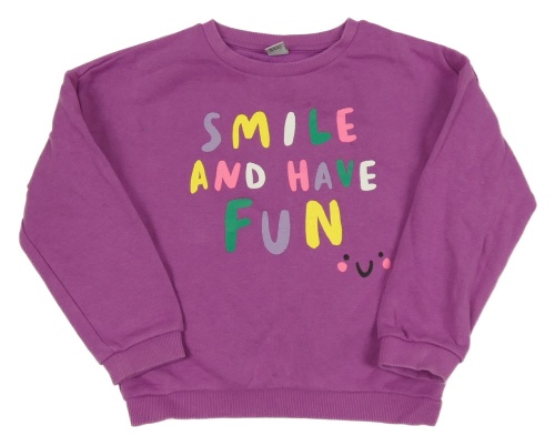 Fialová mikina s nápisem a smajlíkem Tu