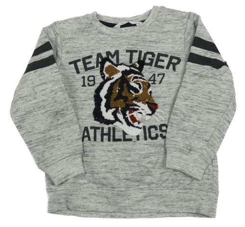 Šedá melírovaná mikina s nápisem a tygrem z flitrů H&M