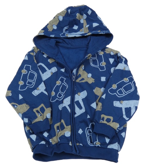 Tmavomodrá propínací mikina s auty a kapucí George