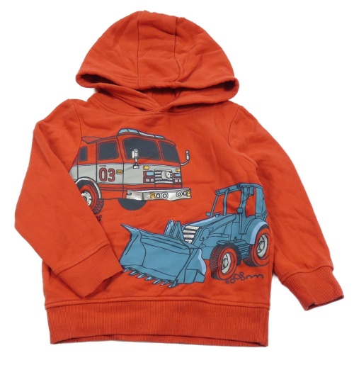 Červená mikina s hasiči a bagrem a kapucí C&A