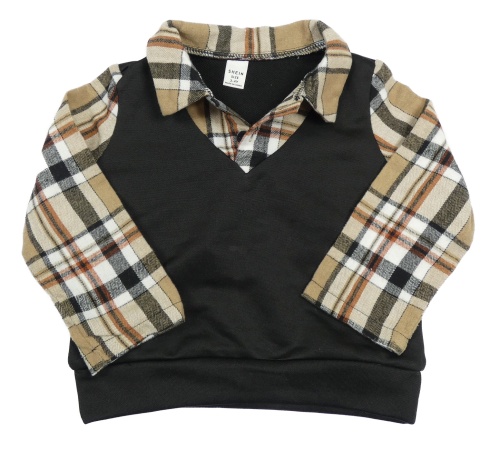 Černo-béžovo-bílá mikina s kostkovanými prvky a límečkem Shein