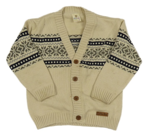 Béžovo-černo-hnědý vzorovaný propínací svetr